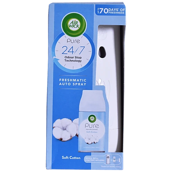 You're viewing: Air Wick Freshmatic Pure Soft Cotton Automatic Air Freshener Spray Kit White 250ml