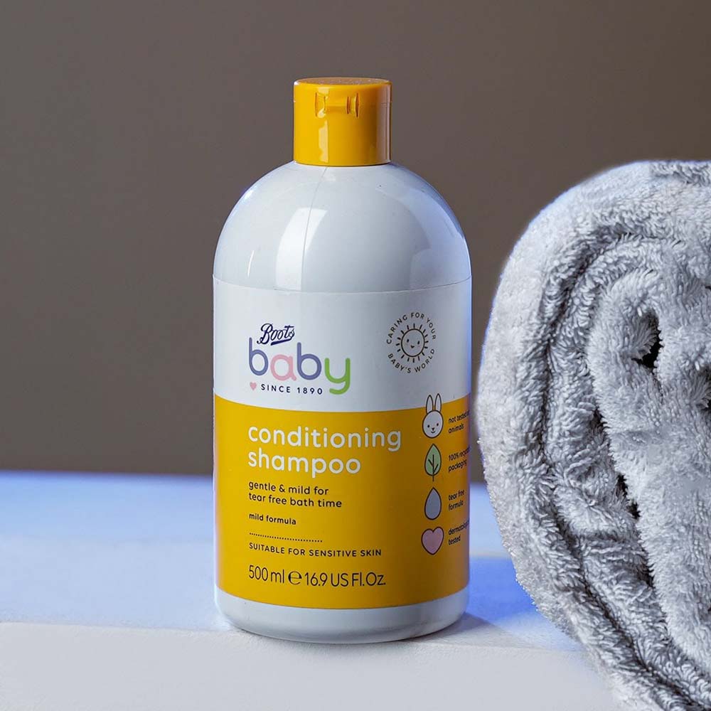 This Boots Baby product will be kind and gentle, to you, your little one and our world. We’ve dermatologically tested it to make sure it is safe for everyone. We’ve even made sure that this packaging is 100% recyclable; that’s one less thing for you to worry about. Make bath time fun, free from tears and full of foam with our kind and gentle conditioning shampoo. We’ve made this conditioning shampoo to care for your little ones, as if they were our own. It’ll leave their tiny head squeaky clean and soft.