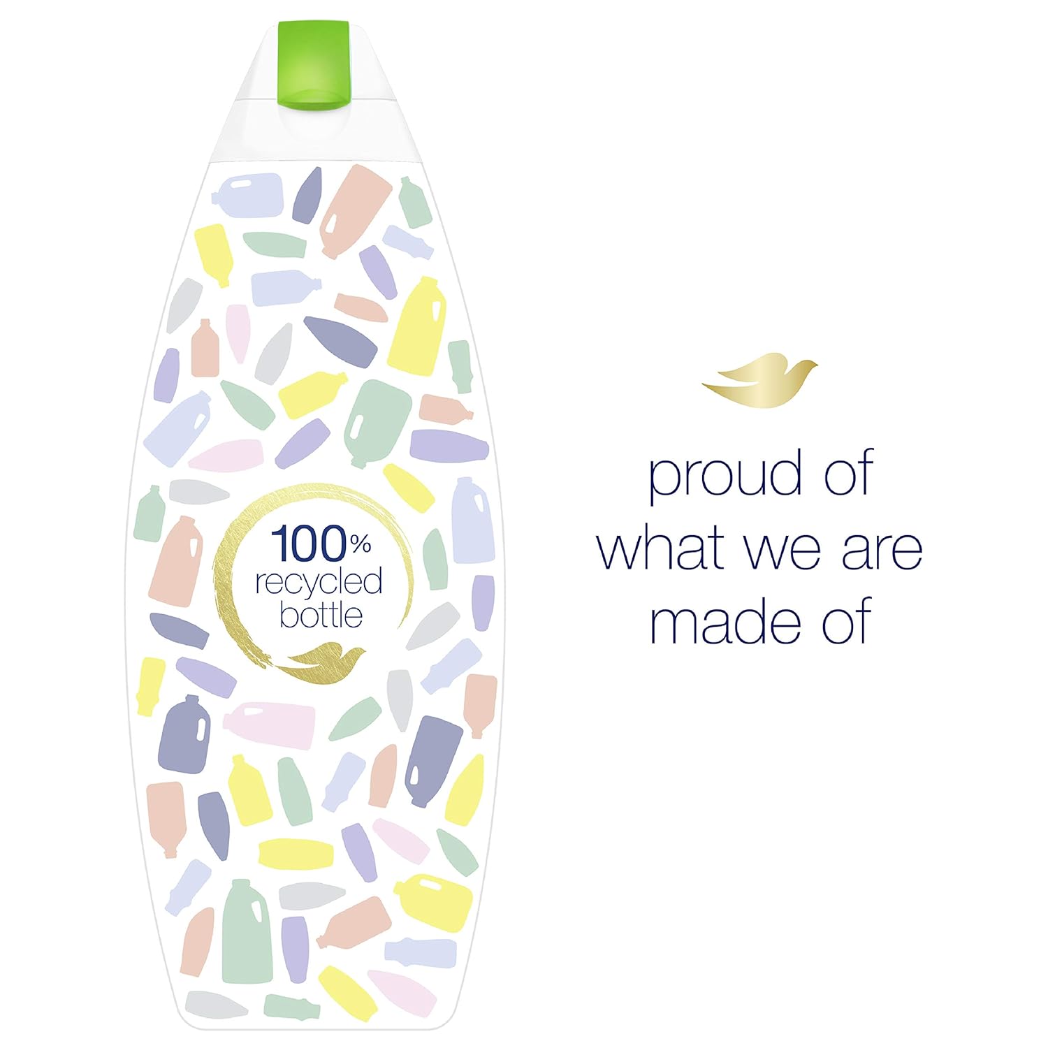• This bottle is made in 100% recycled plastic bottles so you can feel good about switching from shower soap to Dove
