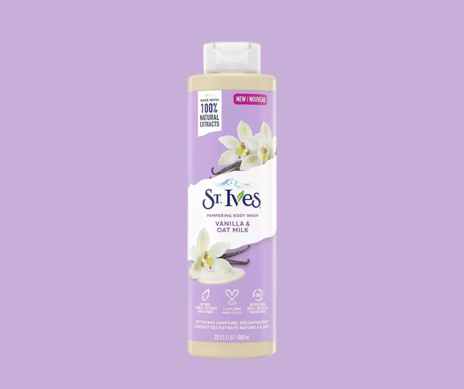 St. Ives Vanilla & Oat Milk Pampering Body Wash pampers your skin while gently cleansing it with a sudsy, sumptuous lather
